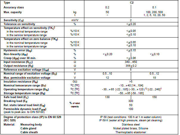 德國HBM稱重傳感器C2/500KG產品參數:GxV廣州南創電子科技有限公司