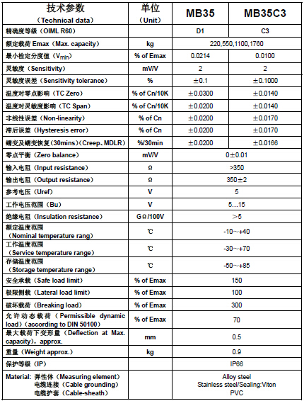 德國HBM MB35C3系列稱重傳感器所有量程如下;657廣州南創(chuàng)電子科技有限公司