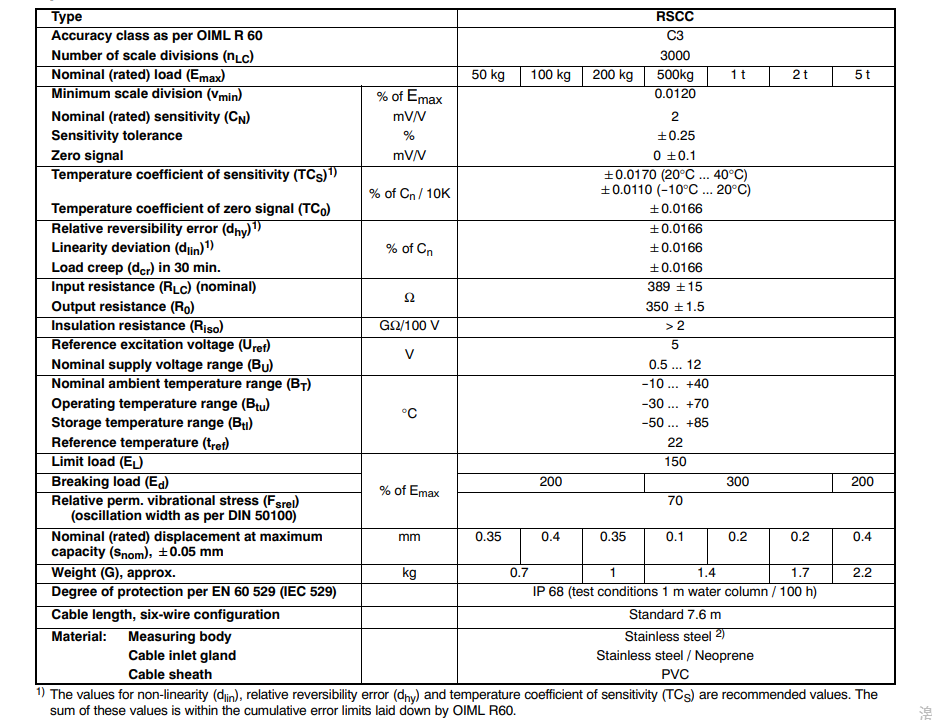 sW1廣州南創電子科技有限公司德國HBM稱重傳感器1-RSCC3/5t-1產品技術參數:sW1廣州南創電子科技有限公司