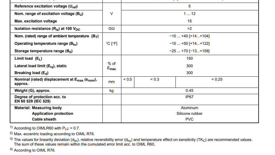 EmY廣州南創電子科技有限公司德國HBM傳感器SP4MC3MR/150kg用于準確度分類的最大分度數常以1000為單位表示。例如,以2表示2000個分度。