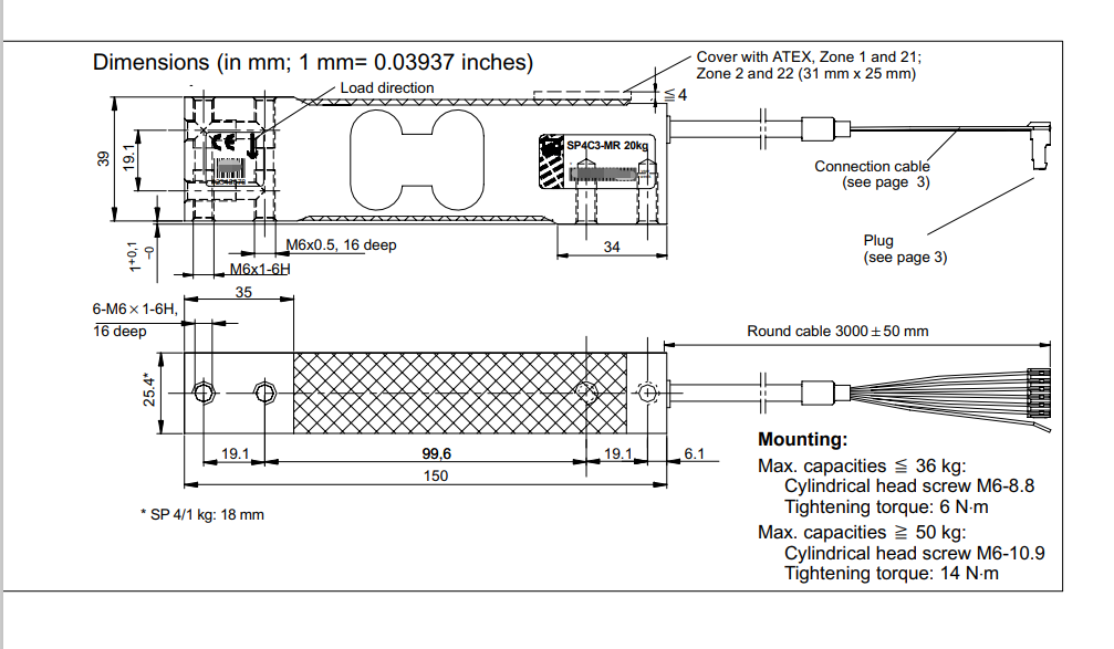 EmY廣州南創電子科技有限公司 EmY廣州南創電子科技有限公司德國HBM稱重傳感器SP4MC3MR/200kg產品尺寸圖:EmY廣州南創電子科技有限公司