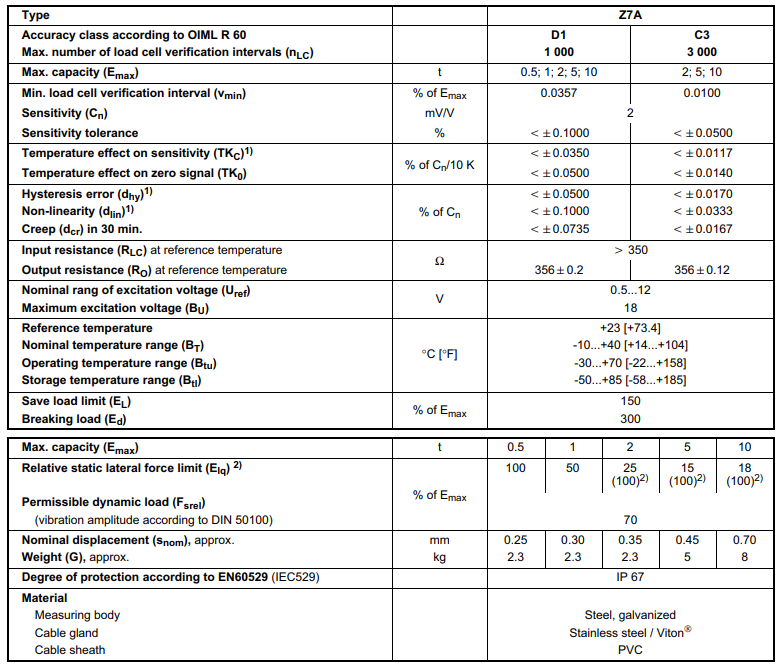德國HBM稱重傳感器Z7AC3/2t產品技術參數:DTw廣州南創電子科技有限公司