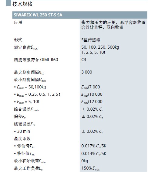 德國西門子SIWAREX WL250 ST-S SA稱重傳感器相關熱賣型號: