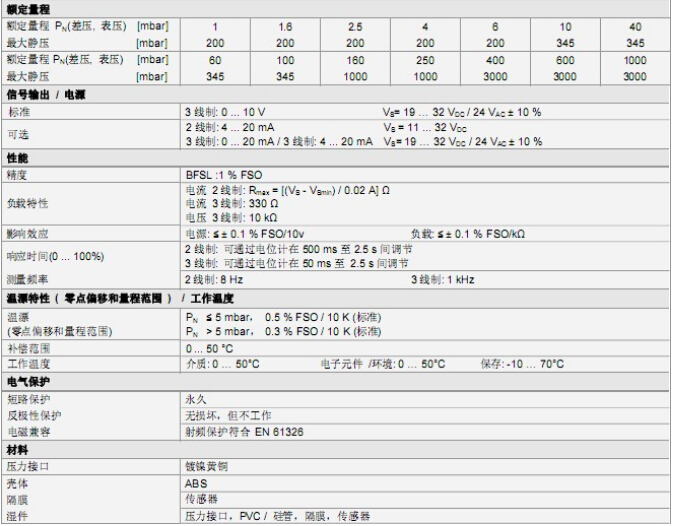 差壓 0 ... 1 mbar 至 0 ... 1000mbar