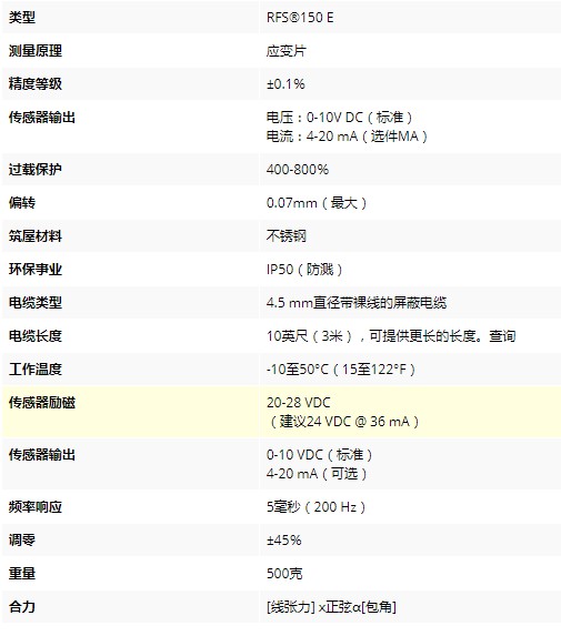 美國(guó)CHECKLINE_RFS150E張力傳感器量程可達(dá)500Kg / 5000 N / 1100 lbs