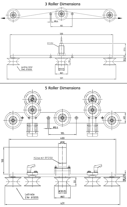 導輥 | V槽,U槽或扁圓柱(帶或不帶法蘭) |