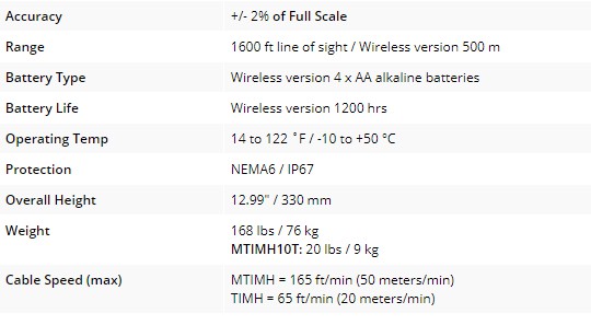 MTIMH / TIMH由具有五(5)個滑輪結構的耐腐蝕不銹鋼制成,使電纜在通過滑輪的過程中受到嚴格控制。這大大提高了準確性和可重復性。這些滑輪具有免維護軸承。傳感器的負載引腳外殼的防護等級為IP67(Nema 6),使其適用于最惡劣的環境。