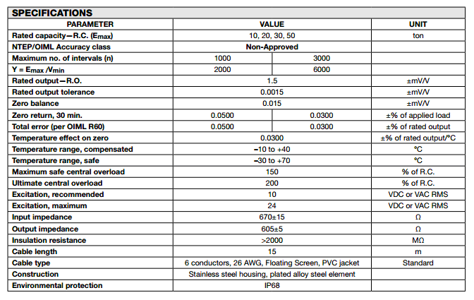 美國(guó)特迪亞tedea 121稱重傳感器系列所有量程如下:agJ廣州南創(chuàng)電子科技有限公司