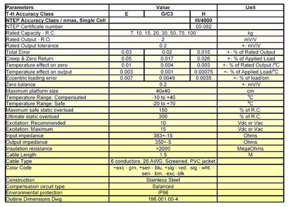 美國Tedea-huntleigh稱重傳感器產品參數:hA7廣州南創電子科技有限公司