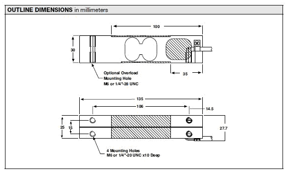 美國特迪亞Tedea 1130稱重傳感器尺寸:hA7廣州南創電子科技有限公司
