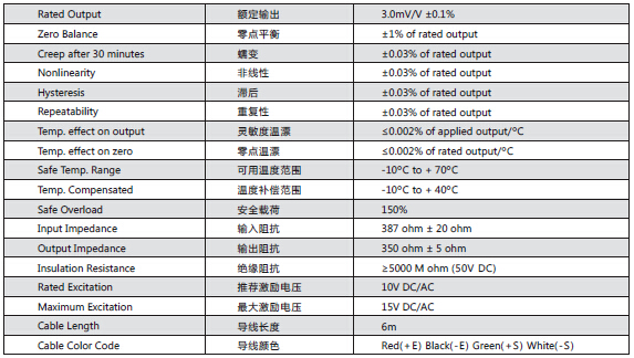 美國Transcell稱重傳感器BSS-500kg 產品參數:ZAL廣州南創電子科技有限公司