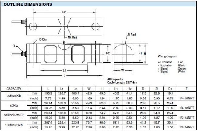 美國Celtron CLB-40klb稱重傳感器系列稱重傳感器所有量程如下:fyt廣州南創電子科技有限公司