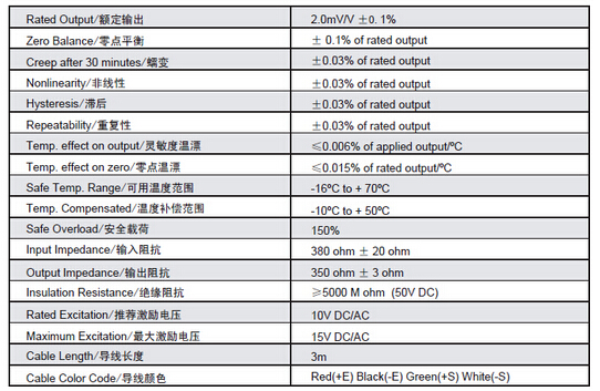 美國Transcell稱重傳感器BSH-150kg產品參數:xJ4廣州南創電子科技有限公司