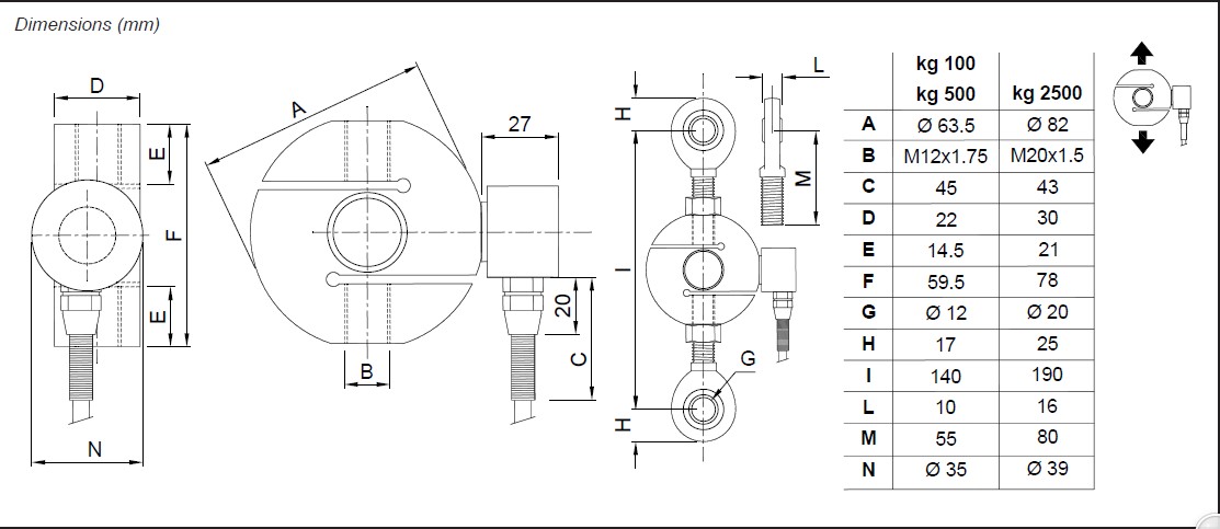 Laumas CTOL-2500kg傳感器外形尺寸外形尺寸(mm ):