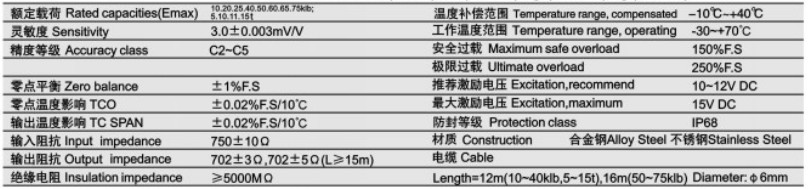 輸出(靈敏度)﹕2mV/V;Output: 2mV / V;