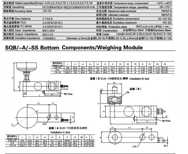 SQB-3T傳感器有多種可選的替代傳感器材料,可選防水罩面,環氧樹脂涂層,可滿足各種稱重介質的要求SB -A - 7.5T傳感器壓力溫度最高可達到500ssi @ 77 ℃( 3BAC @ 25 ℃) ,重2-7磅,
