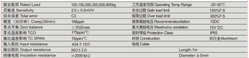 柯力UDA-300KG傳感器蠕變 (%FS/30min) ≤±0.060≤±0.017