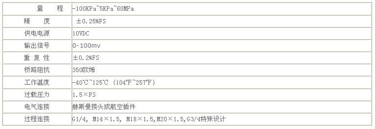 滯后≤%F·S±0.03〜PT215壓力靈敏度溫度系數≤%F·S/60℃±0.05
