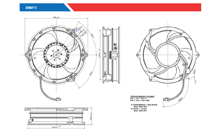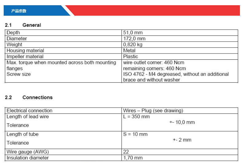ebmpapst風扇W2E143-AA09-01兩根電源線代表電容器那部分已經(jīng)接在機體內(nèi)部,僅需將兩根電源線分別與來自空開的火線及電容線連接。