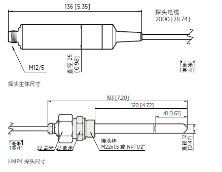 探頭連接裝置包括 M22x1.5 和 NPT1/2” 接頭
