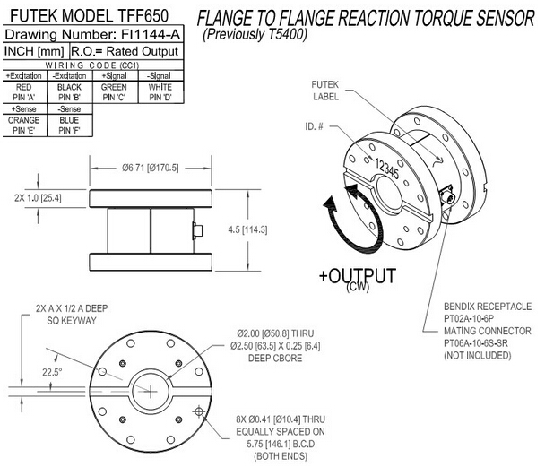 美國FUTEK TFF650扭矩傳感器尺寸圖: