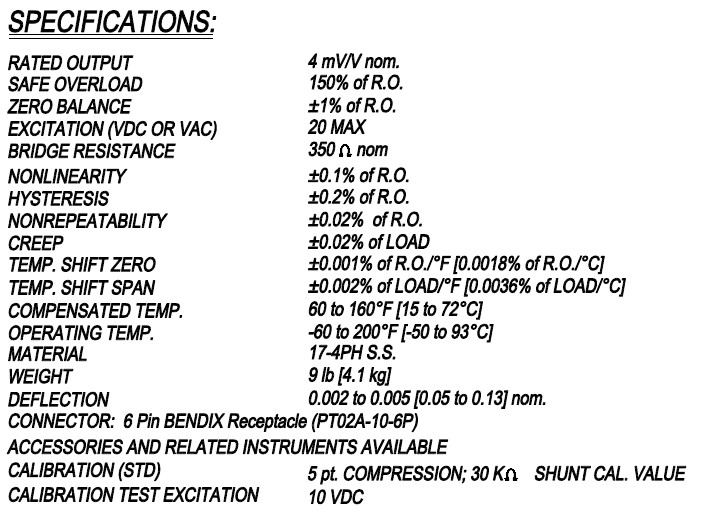 美國FUTEK LCF500稱重傳感器技術參數圖: