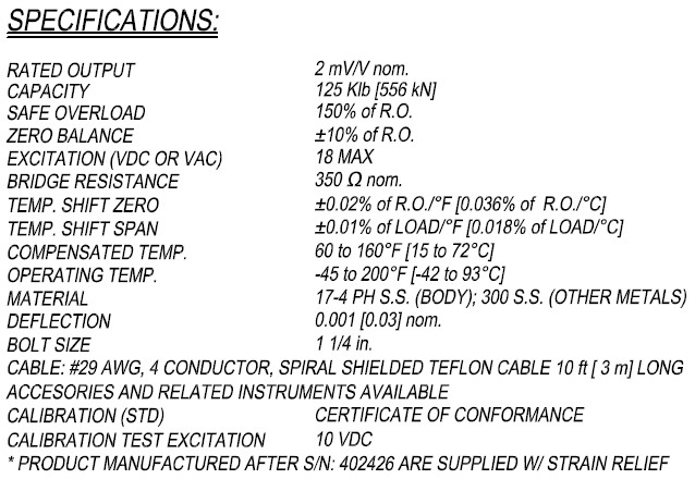 美國FUTEK LLW480稱重傳感器技術參數圖: