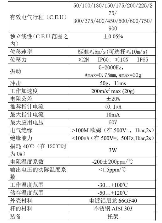 VFs廣州南創電子科技有限公司Gefran直線位置傳感器的技術參數圖:VFs廣州南創電子科技有限公司