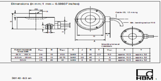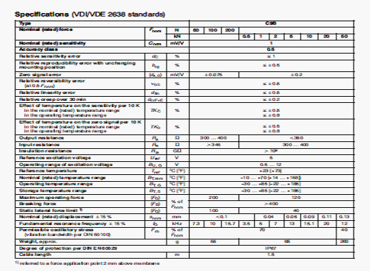 德國HBM C9B/1KN稱重傳感器技術參數圖: