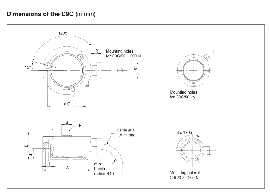 wuh廣州南創(chuàng)電子科技有限公司德國HBM力傳感器C9C/1KN尺寸圖:wuh廣州南創(chuàng)電子科技有限公司