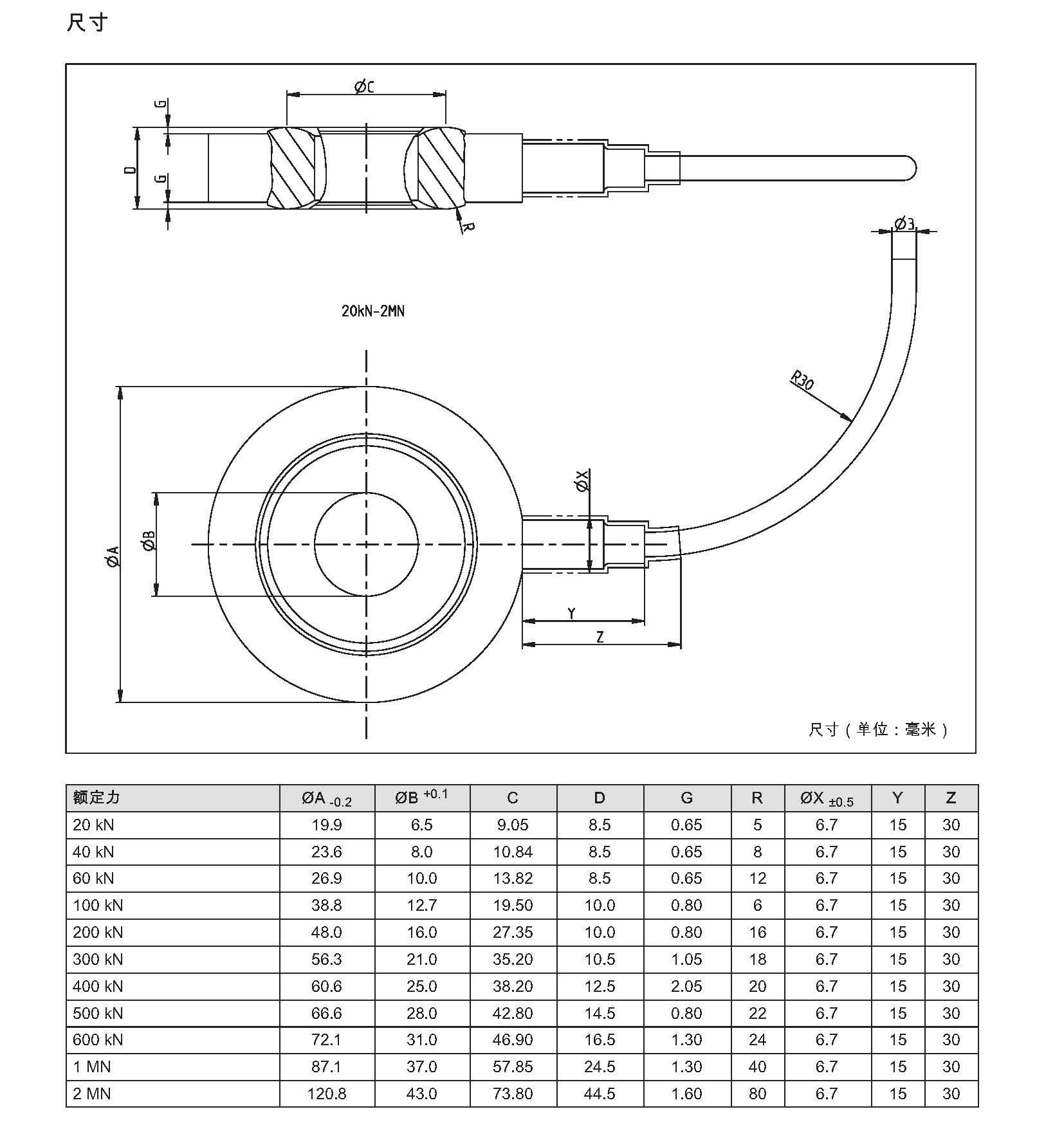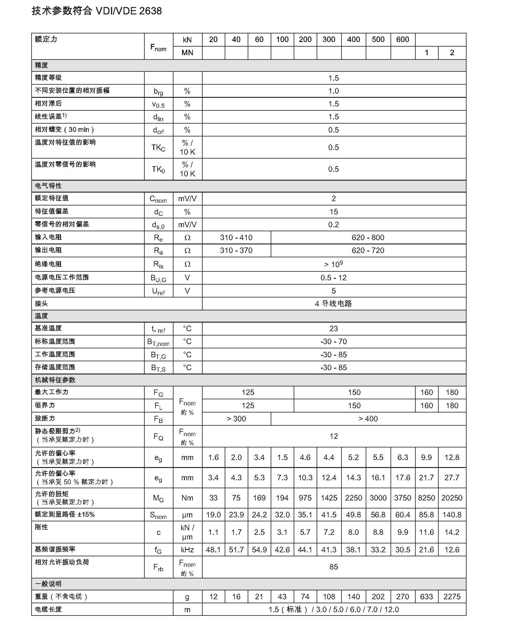 DIk廣州南創電子科技有限公司KMR+/200KN力傳感器產品特點:DIk廣州南創電子科技有限公司HBM 精度等級: 1