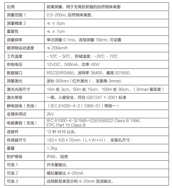 V6W廣州南創(chuàng)電子科技有限公司2、 測量距離范圍0.-60米,200米,要使用反光板