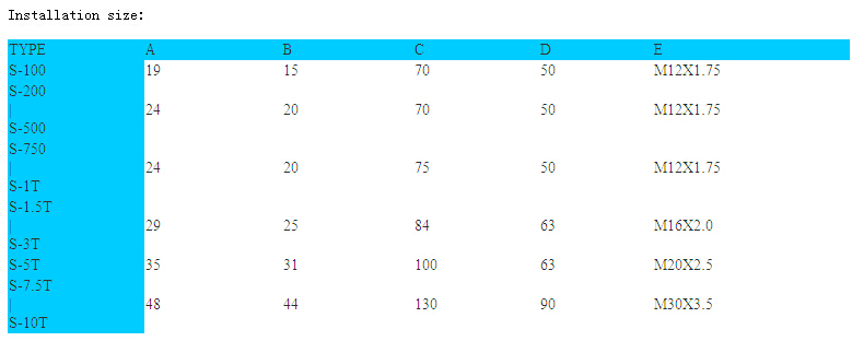 S-100Kg,S-200Kg,S-100Kg,S-350Kg,S-750Kg,S-1000Kg,S-1500Kg,S-2000Kg,S-3000Kg,S-5000Kg,S-7500Kg,S-10000Kg,S-1t,S-1.5t,S-2t,S-3t,S-5t,S-7.5t,S-10t