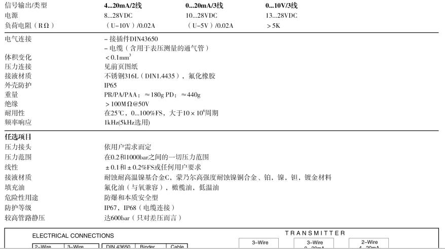 pWa廣州南創電子科技有限公司在濕/濕使用條件下的絕壓、氣壓、表壓(正與負)和差壓,13個標準壓力范圍,電流或電壓輸出。