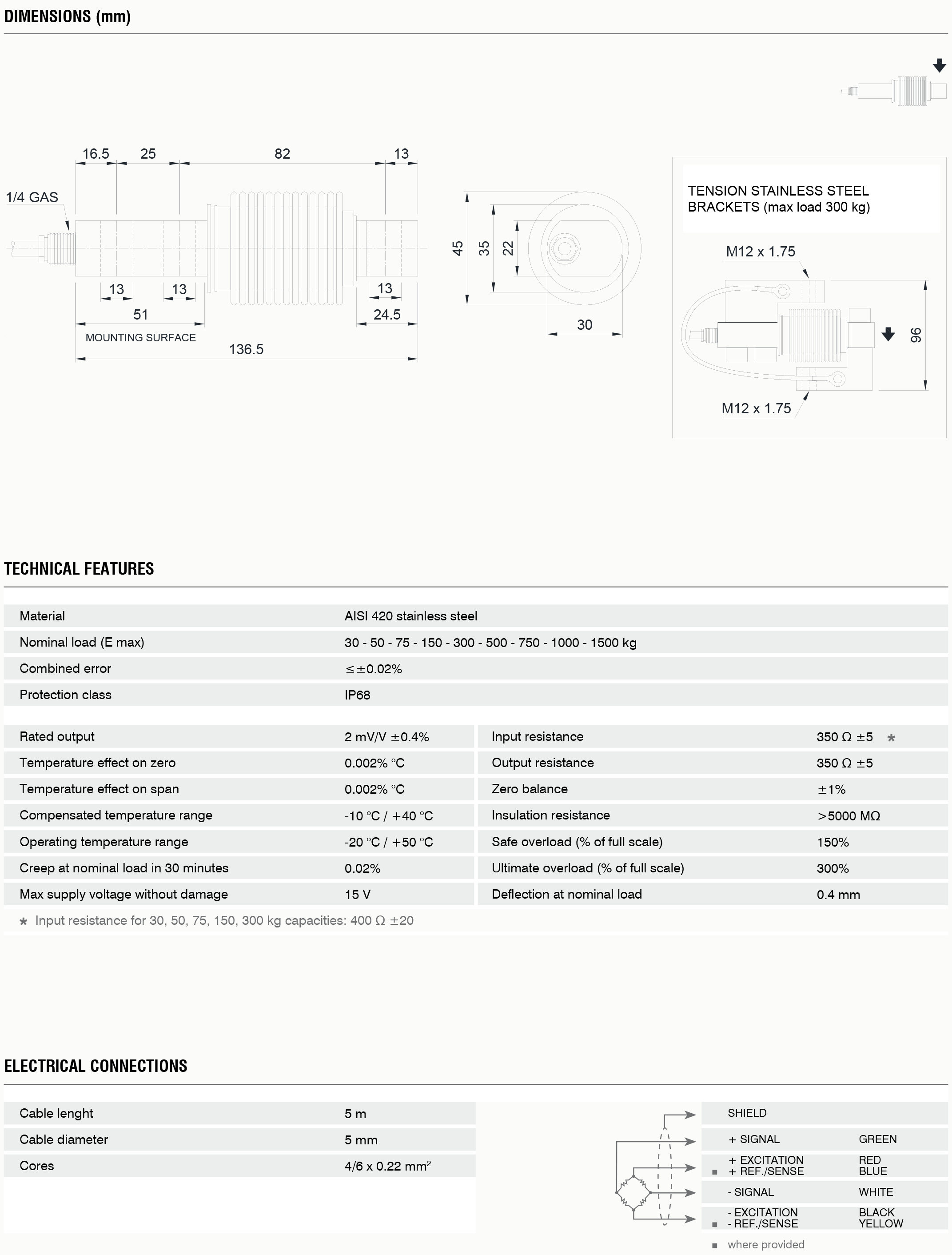 產品名稱:FCAX-30Kg波紋管稱重傳感器_意大利Laumas FCAX-(30~1500Kg)