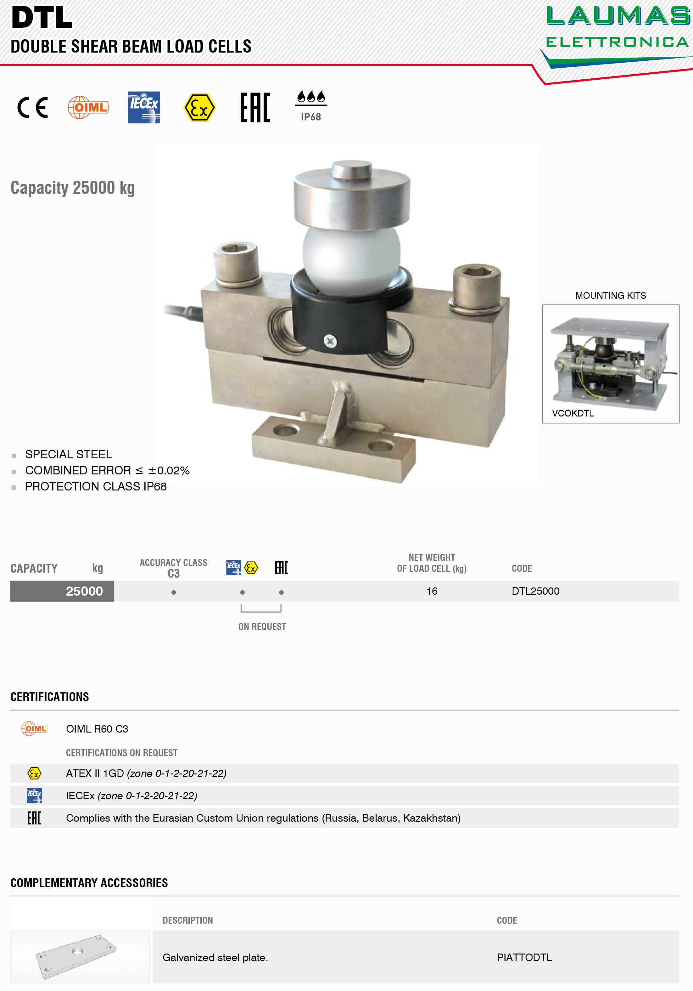 廣州南創專業提供意大利Laumas_DTL-25000Kg雙剪切梁稱重傳感器,原裝正品,質量保證,貨期短,意大利Laumas打造頂級傳感器品牌,【華南區★一級經銷商】做中國的,世界的工業備品備件分銷專家DTL-25000Kg訂購方便,還可以享受當地個性化支持,技術支持,歡迎來電訂購。