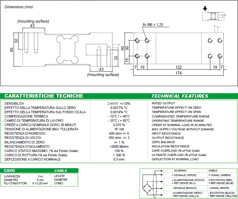 額定輸出:2 mV/V +/- 10%