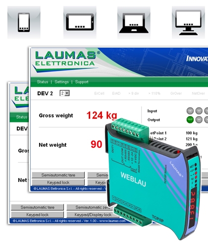 所述WEBLAU裝置是為所有安裝的有用支持/ LAUMAS的經銷商稱重儀表,因為它可以更輕松的遠程維護,允許控制的地方,連接到RS485儀器包括可能的異常的狀態。