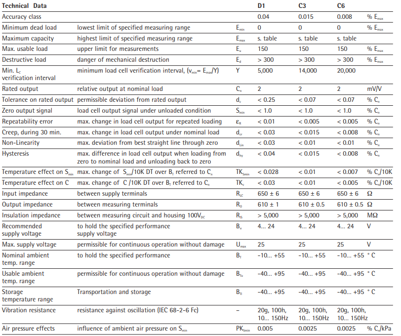 ZBm廣州南創電子科技有限公司Minebea Intec稱重傳感器技術參數圖:ZBm廣州南創電子科技有限公司