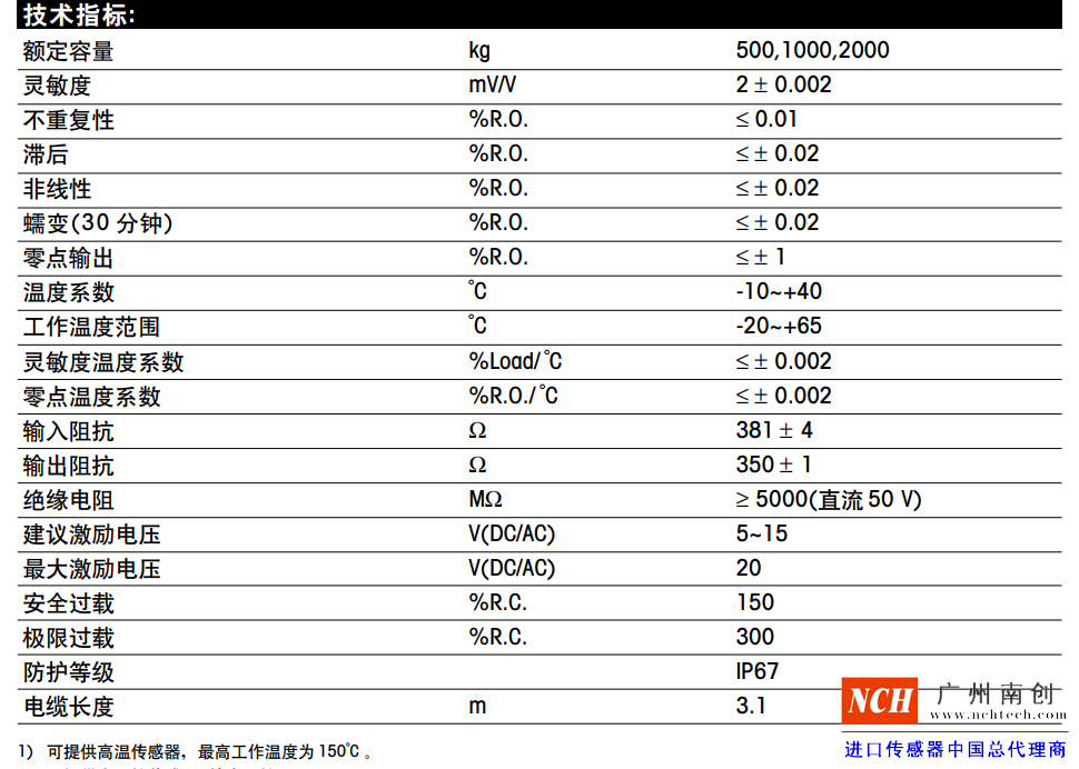 托利多SBC稱重傳感器技術(shù)指標(biāo):