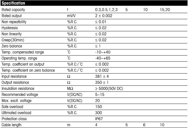 梅特勒托利多SB系列稱重傳感器所有量程如下:VmG廣州南創電子科技有限公司