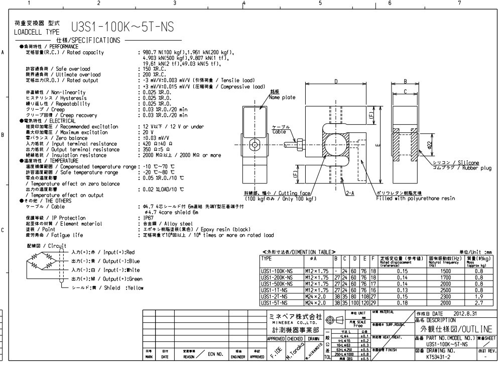 U3S1-100K-NS | 980.7N﹛100kgf﹜ | M12×1.75 | - | 24 | 60 | 76 | 18 | 0.15 | 1500 | 0.8 |