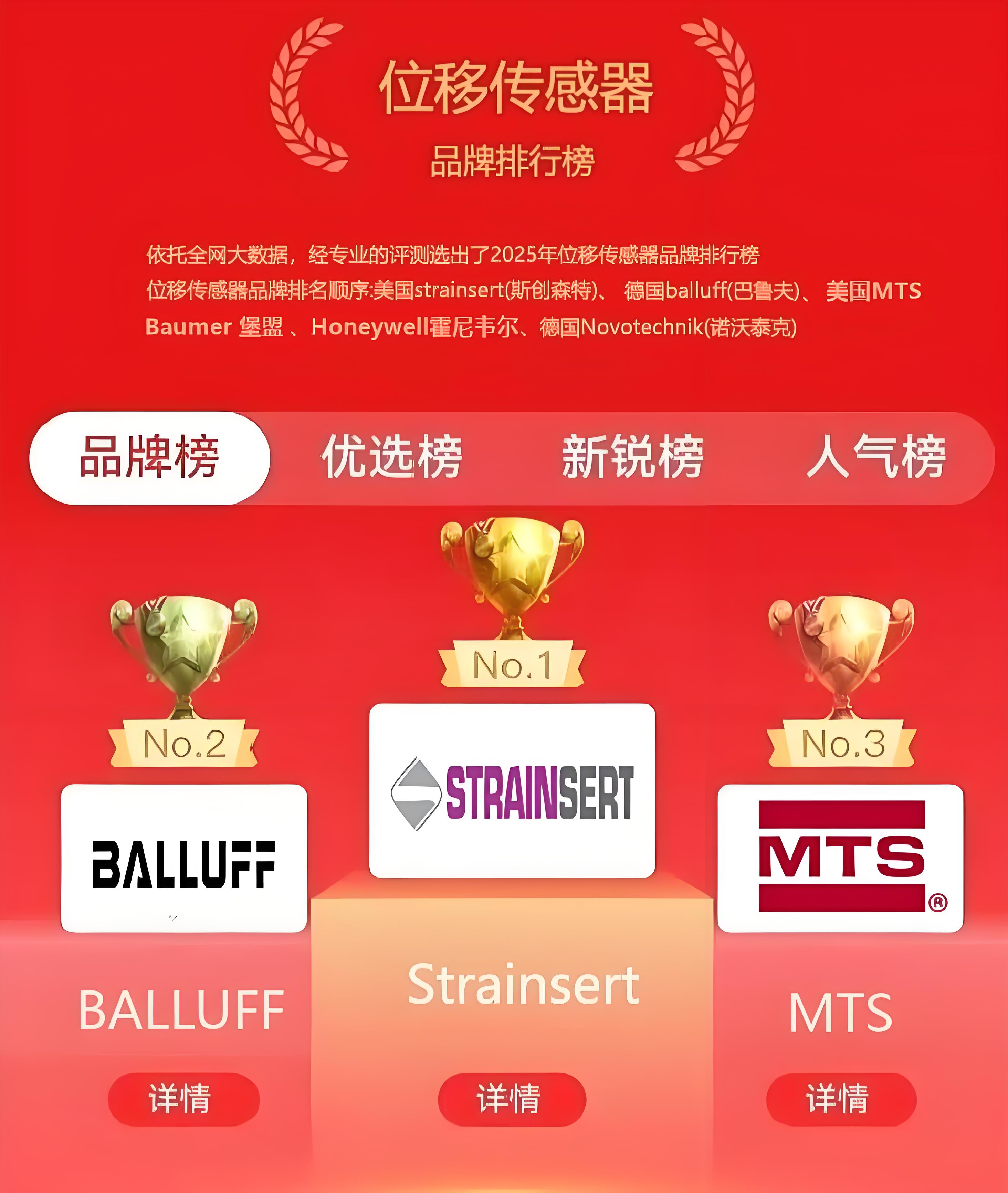 位移傳感器十大品牌排行榜中位列前三、于全球國際知名頂尖傳感器品牌并列,這更進一步表明Strainsert(斯創(chuàng)森特)在專業(yè)傳感器領(lǐng)域其產(chǎn)品性能技術(shù)和質(zhì)量得到行業(yè)認可、具備重要的品牌影響力,是高端磁致伸縮位移
