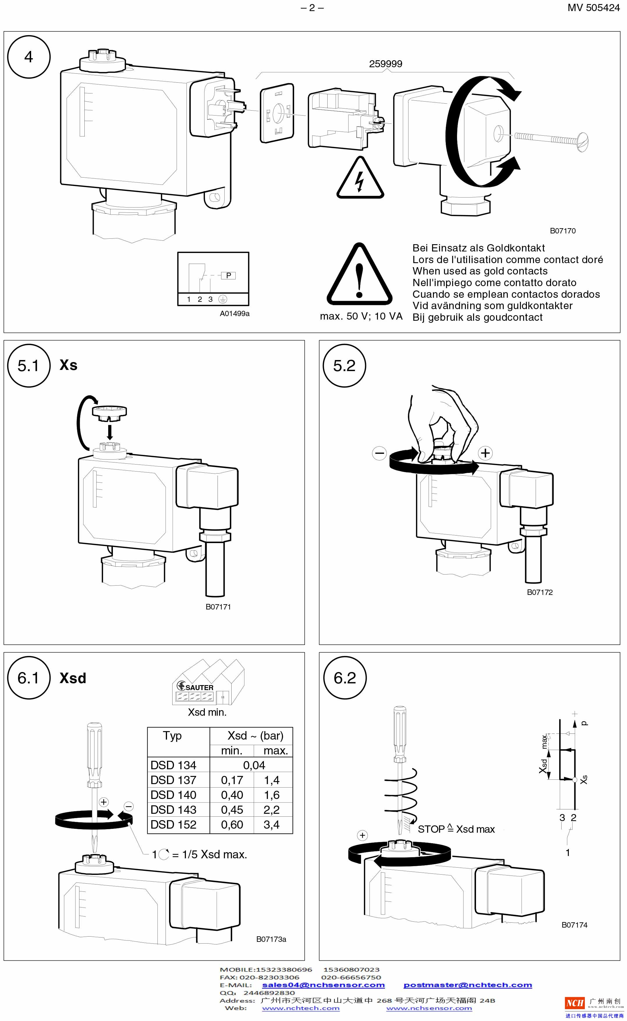 瑞士SAUTER—DSD差壓開關(guān)安裝說明