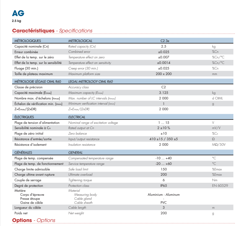 法國Scaime稱重傳感器AG-50kg系列其他型號: