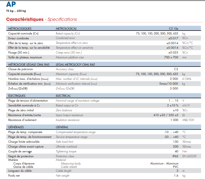 法國Scaime 稱重傳感器AP系列其他型號: