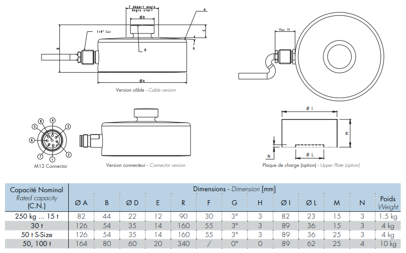 法國世感Scaime稱重傳感器產品參數圖:j4E廣州南創電子科技有限公司