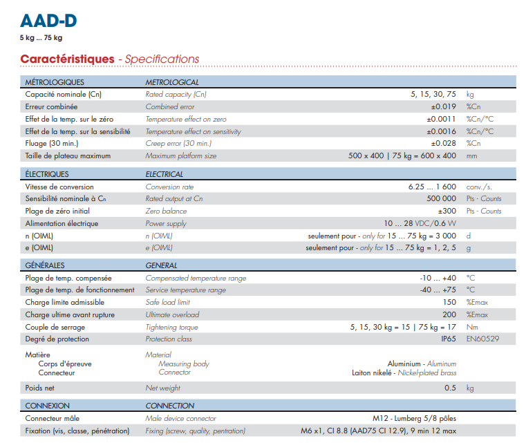 法國世感Scaime稱重傳感器AAD-D-5KG產品參數圖: