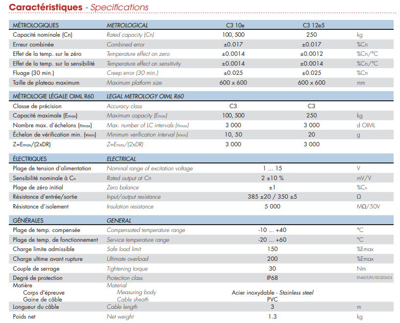法國世感Scaime稱重傳感器AXL-10KG產品參數圖: