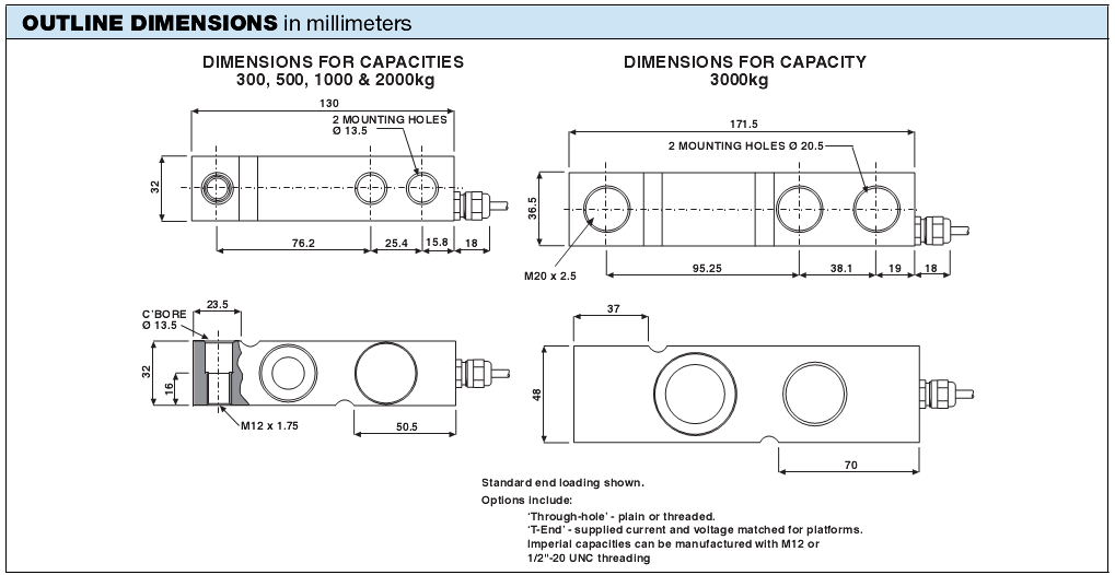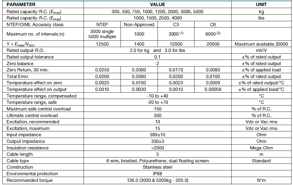 •量程:300 - 5000kg,1000-5000lbs(• Capacities 300 - 5000kg, 1000 - 5000lbs